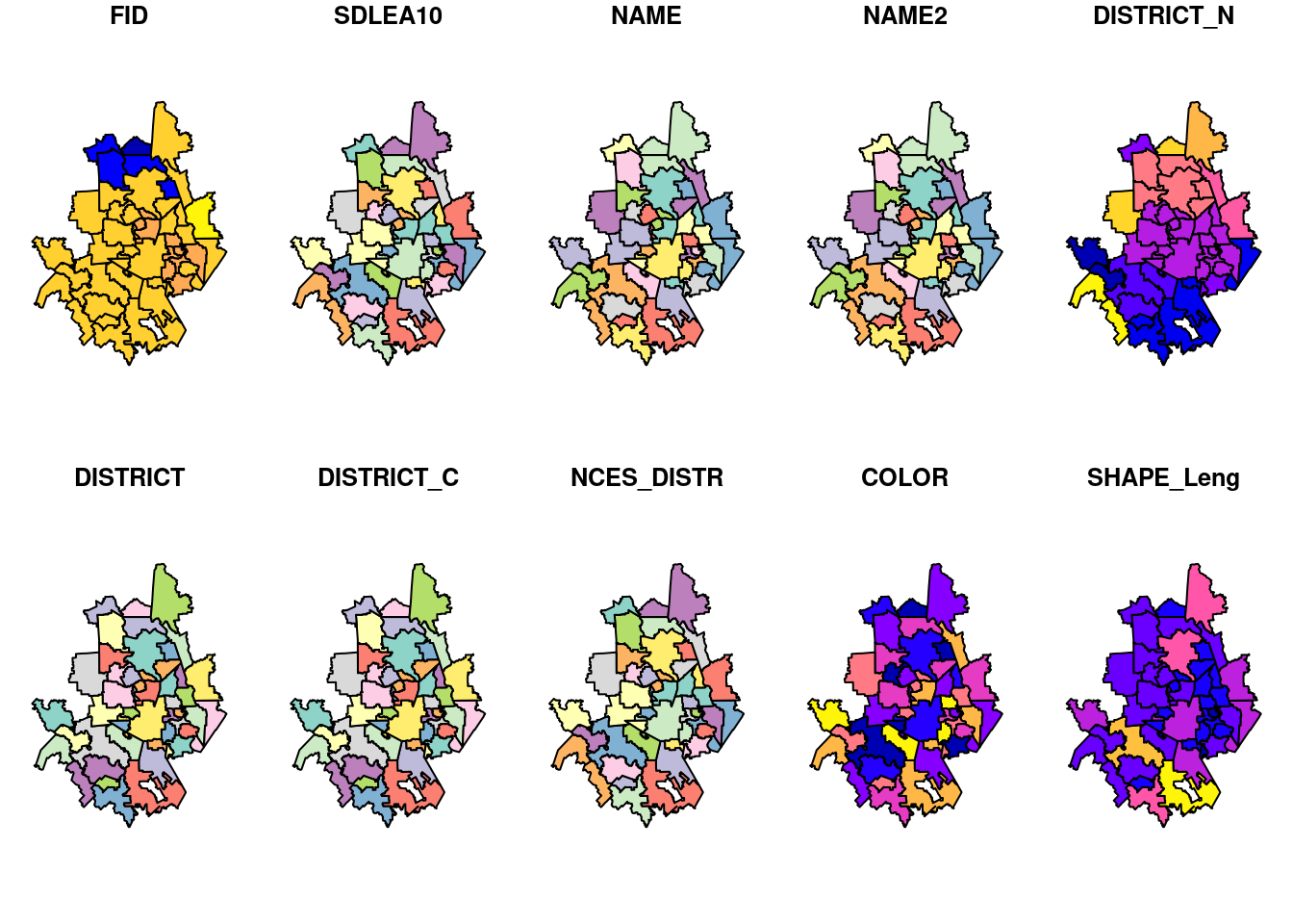 # CRS is good, we have polys, I think I'm happy. Let's plot themplot(SchoolPolys[,"NAME"])